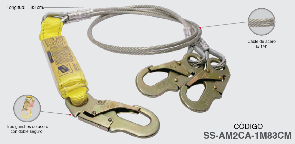 Fabricado con cable doble de acero de 1/4”.